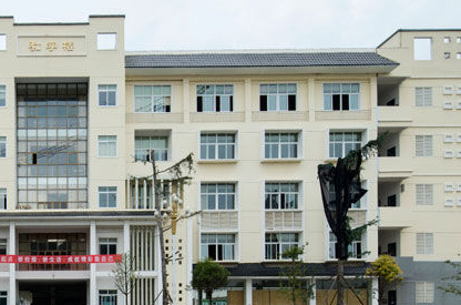 学校背靠巍峨挺拔的镇宁山,斜依苍翠葱郁的青龙山,与幽逸奇趣的犀牛洞隔溪相望,校内小溪潺潺,绿树成荫,建筑错落有致,被原国家教委领导誉为“盆景学校”,音乐楼还享有“小布达拉宫”的美称。